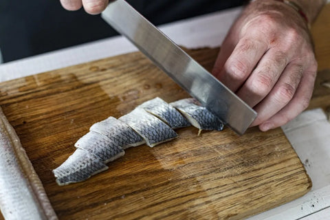Odsolone śledzie kroisz w dzwonko ze skórą, następnie możesz marynować je w dowolnych marynatach: majonezie, occie, musztardzie lub innych zalewach smakowych. Sugerujemy nie ściągać skóry, ponieważ ma mnóstwo smaku i jest bardzo delikatna.