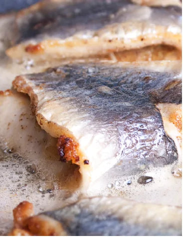 Odsolone filety ze skórą dokładnie suszysz. Idealnie jak przed smażeniem poleżą w lodówce i puszczą jeszcze trochę wody. Wyciągnij śledzie na 30 minut przed smażeniem, aby złapały temperaturę pokojową. Następnie obtocz dokładnie w mące i skórą do dna patelni zacznij smażyć na oleju